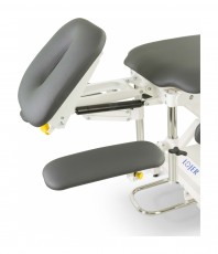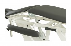 Заниженные опоры для рук пациента с регулировкой по высоте. На максимальнйой высоте опоры для рук расположены ниже уровня  ложа пациента
