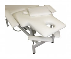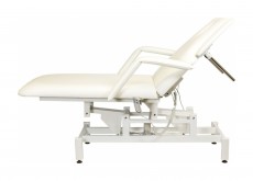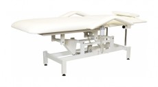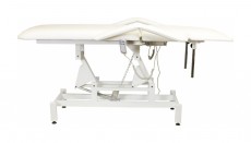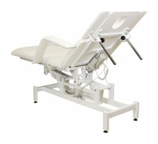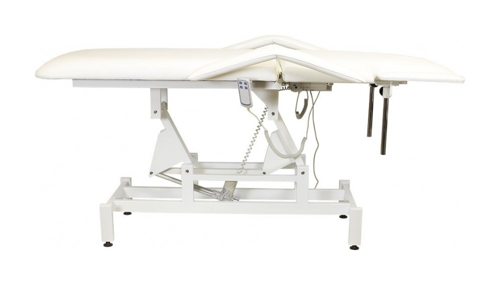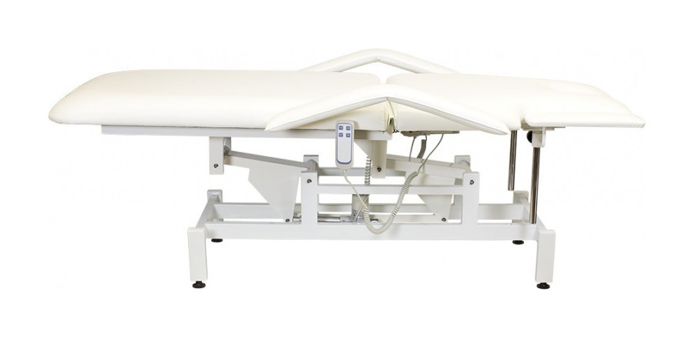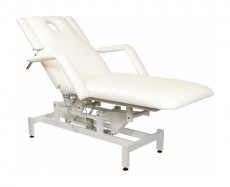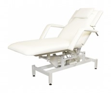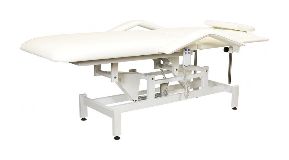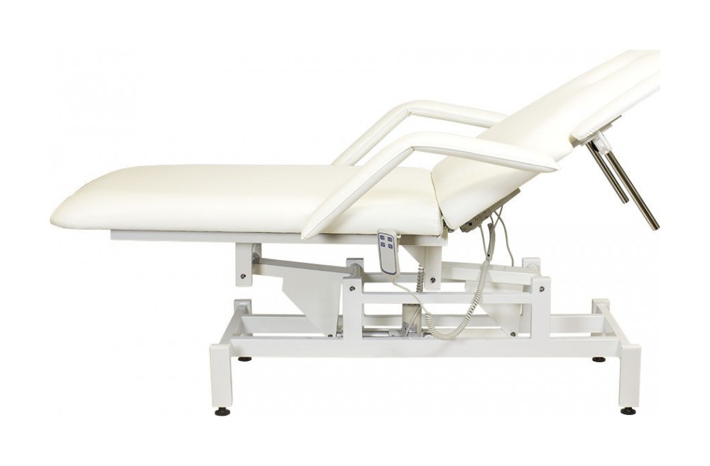 Кресло косметологическое Мэдисон Элегия-2А (МД-850) многофункциональное, электрическое, 2 мотора Обивка: выполнена из поролона, обивочный материал – влагоустойчивая экокожа. Подлокотники: съемные, с обивкой в цвет кушетки. Каркас: металл с влагозащитным антикоррозийным покрытием. Основание: на подпятниках, металлическое. Регулировка высоты: электромотор. Наклон спинки: электромотор. Кушетка массажная МД-850 с электроприводом (2 мотора) разработана для оказания услуг в косметологических и массажных кабинетах, СПА-центрах и других салонах в сфере индустрии красоты. Обивка мягких деталей из качественной экокожи, которая не требует специального ухода, легко чистится, устойчива к образованию пятен. В нашем магазине покупателям предоставляется возможность купить массажную кушетку МД-850 с электроприводом (2 мотора) под заказ с любым цветом обивки из предложенных вариантов экокожи. Кушетка разделена на два мягких сегмента, положение которых регулируется. С помощью двух встроенных электромоторов можно дистанционно регулировать угол наклона спинки и высоту кушетки. В комплект поставки входит удобный пульт управления электроприводом. Каркас и основание из металла с защитным покрытием.