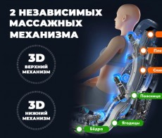 Есть вибрация, воздушно-компрессионный массаж и ролики. Массирует в основном спину, поясницу, плечи и, ягодицы. Не ждите какого-то супер-эффекта, но как средство для релакса после работы - вполне годится. Я довольна!