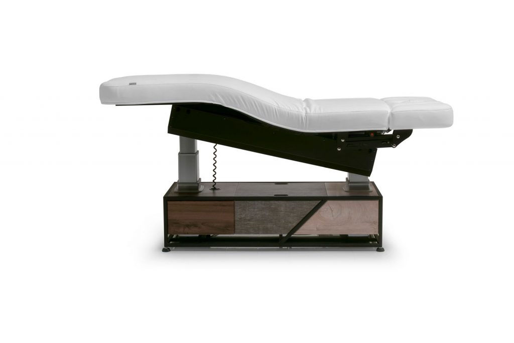 Как и все spa-столы серии MLR Select, Vintage имеет две прочные подъемные стойки, опускающиеся и поворачивающиеся подлокотники, регулируемые секции головы, спины, ног и ступней, а также опционально откидную секцию для ног. Кроме того, стол оснащен функцией Тренделенбурга и функцией блокировки.
