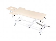 Массажный стол с гидроприводом высоты – КСМ-04г. Каркас сделан из стальной профильной трубы с порошковым полимерным покрытием, устойчивым к ударам, сколам и обработке дезинфицирующими растворами. Ложе и секции выполнены из фанеры, поролона, покрыты искусственной кожей SKADEN (Польша) устойчивой к истиранию, химическим дезинфектантам и УФ-излучению. Технология обтяжки - без швов, облегчающая процесс чистки и санобработки. Цвет обивки – по желанию заказчика. РУ №РЗН 2017/5682 от 20.04.2017 Модель может быть произведена с электроприводом. Сделано в России. Искусственная кожа SKADEN (Польша) Искусственная кожа Skai (Германия) Регулировки: Высота – гидро привод Головная секция – углы наклона от 20° до -40° и от0° до 70°, механизм Rastomat. Ножная секция - угол наклона от 0° до 10°, бесступенчатая механика, фиксация – винт Барашек. Спинная секция – угол наклона от 0° до 15°, механизм - газовая пружина (blok-o-lift). Передние упоры для рук - регулируются по высоте и углу поворота, фиксация – винт Барашек. Боковые упоры для рук – складные, с жесткой горизонтальной фиксацией. Стол снабжен каркасными опорами для стационарного размещения и колесами для перемещения. Переключение с опор на колеса и обратно происходит с помощью механического педального привода. Массажный стол поставляется в собранном виде. Рекомендуем заказывать жесткую упаковку (Ж/У) при транспортировке изделий на дальние расстояния.