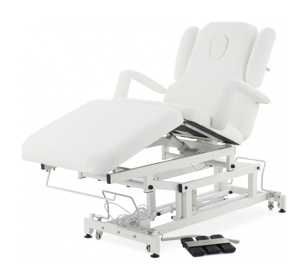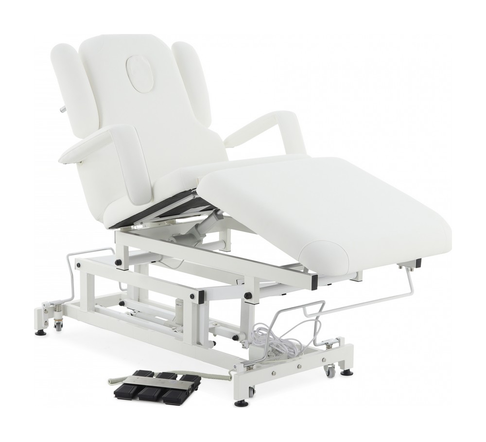 Преимущества для пользователя Широкий диапазон регулировок: спина, таз, икры, подлокотники, опоры для рук — всё подстраивается под индивидуальные требования процедуры. Удобство специалиста: ножной пульт и автоматические настройки угла наклона освобождают руки и позволяют работать с клиентом более эффективно. Комфорт клиента: эластичное, толстое наполнение (8 см) и возможность точного позиционирования обеспечивают расслабляющую обстановку. Надёжность конструкции: стальная рама с эпоксидным покрытием и прочные механизмы выдерживают нагрузку до 150 кг. Простота перемещения: пара колёс и нажимной механизм даёт возможность одномоментного вывода колёс для перекатки. Это модернизированный электрический массажный стол ММКМ-2 SE3.21.10Д-01 — оптимальный выбор для салонов красоты, СПА-центров и медицинских учреждений. Он позволит обеспечить высочайший уровень удобства и эффективности процедур для ваших клиентов.