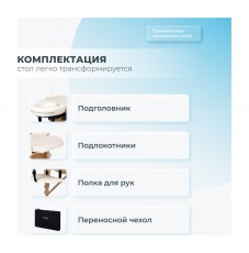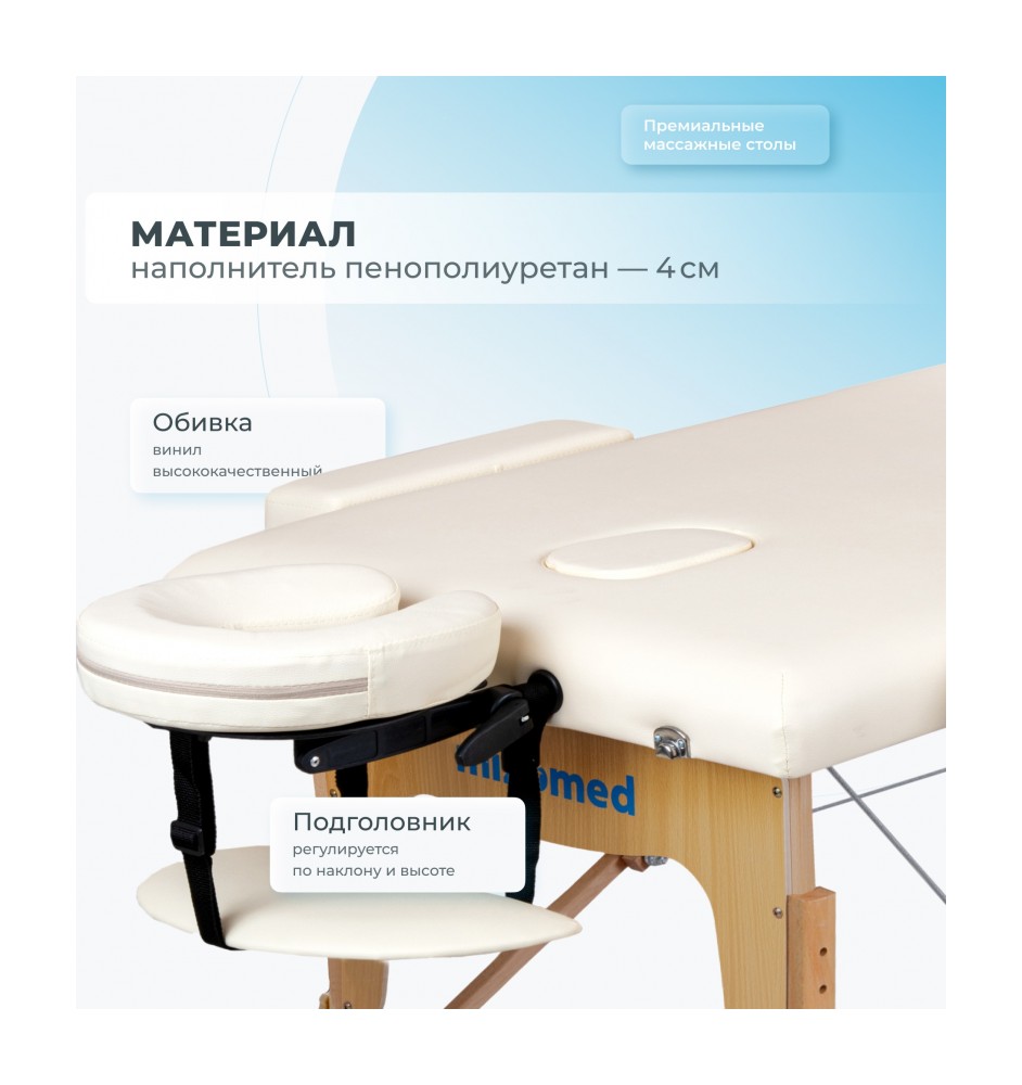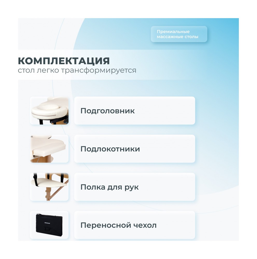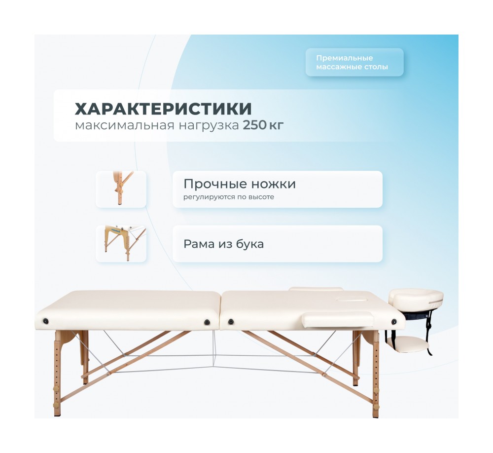 Стол реально лёгкий — всего 11 кг, и собрался за минуту. Очень удобно, если нужно его переставлять или брать с собой на выезд. Обивка приятная на ощупь, а мягкий наполнитель 4 см делает массаж комфортным для клиентов.